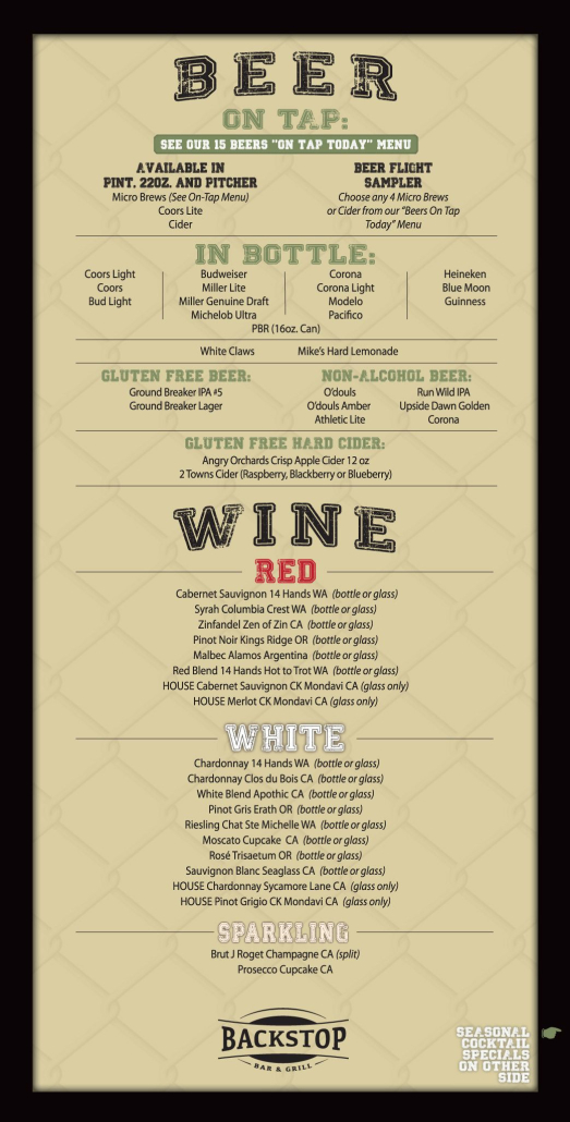 3pm to 6pm & 9pm to closing everyday in the Backstop Bar